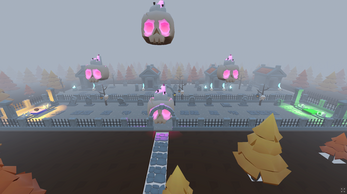 From a visual / level design perspective, the dark level was the best one out of them all. I wish you would have explored more ideas like that, instead of the levels leading up to it. But something happened in this level, that I don't understand if it was by design or not: I hit the skull, instead of the button, and it looked as if I won? Or at least, I got sent back to the menu. Either it was a bug, or intended. If the latter, the information could have been communicated better. The camera was also not optimal, but it was serviceable.